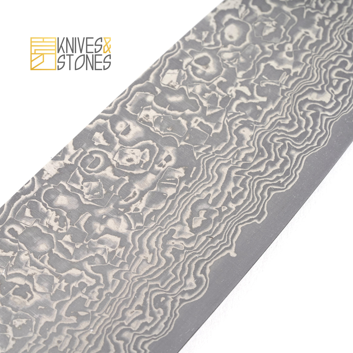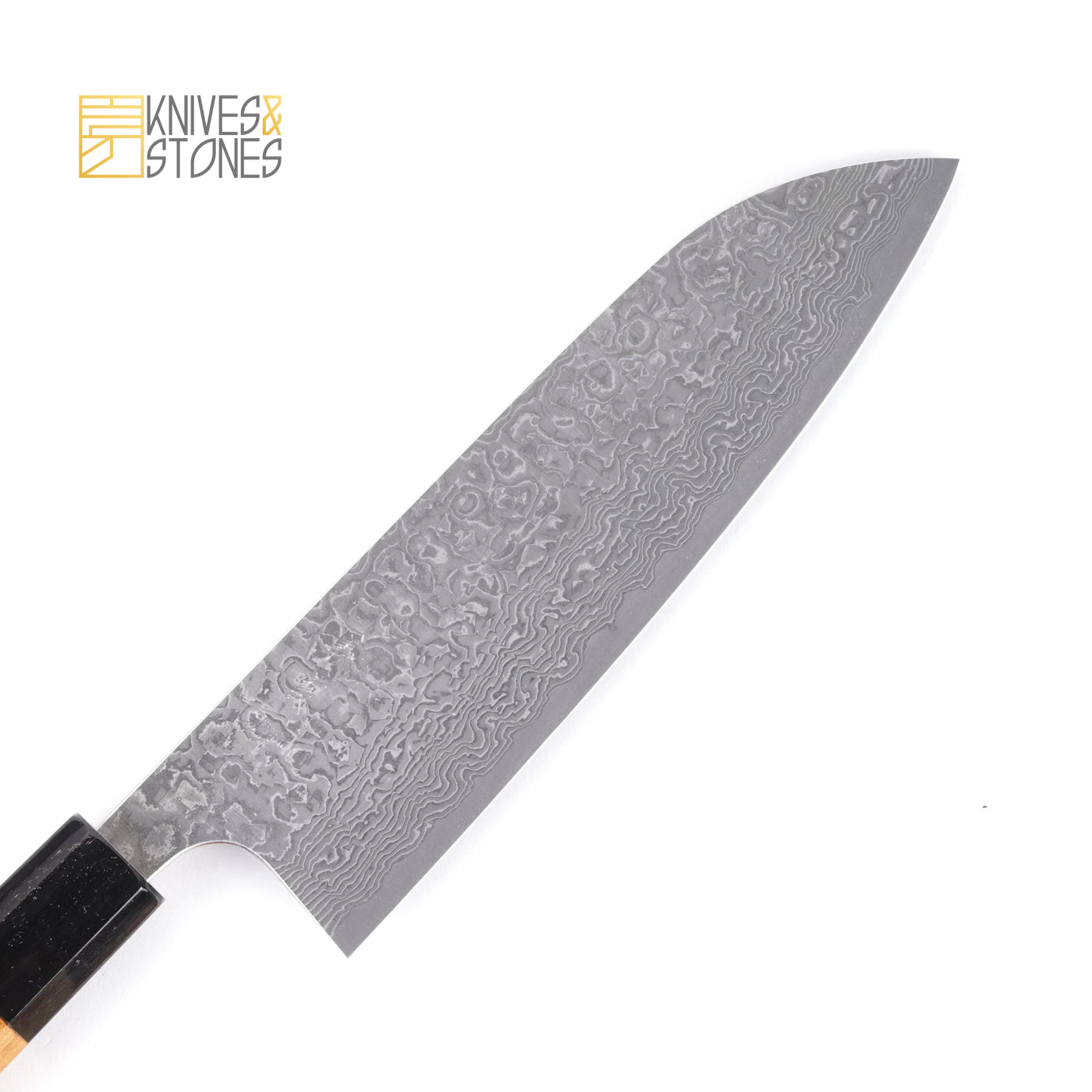 Yoshimi Kato VG10 Etched Black Damascus Santoku 175 mm with K&S Teak wood Handle