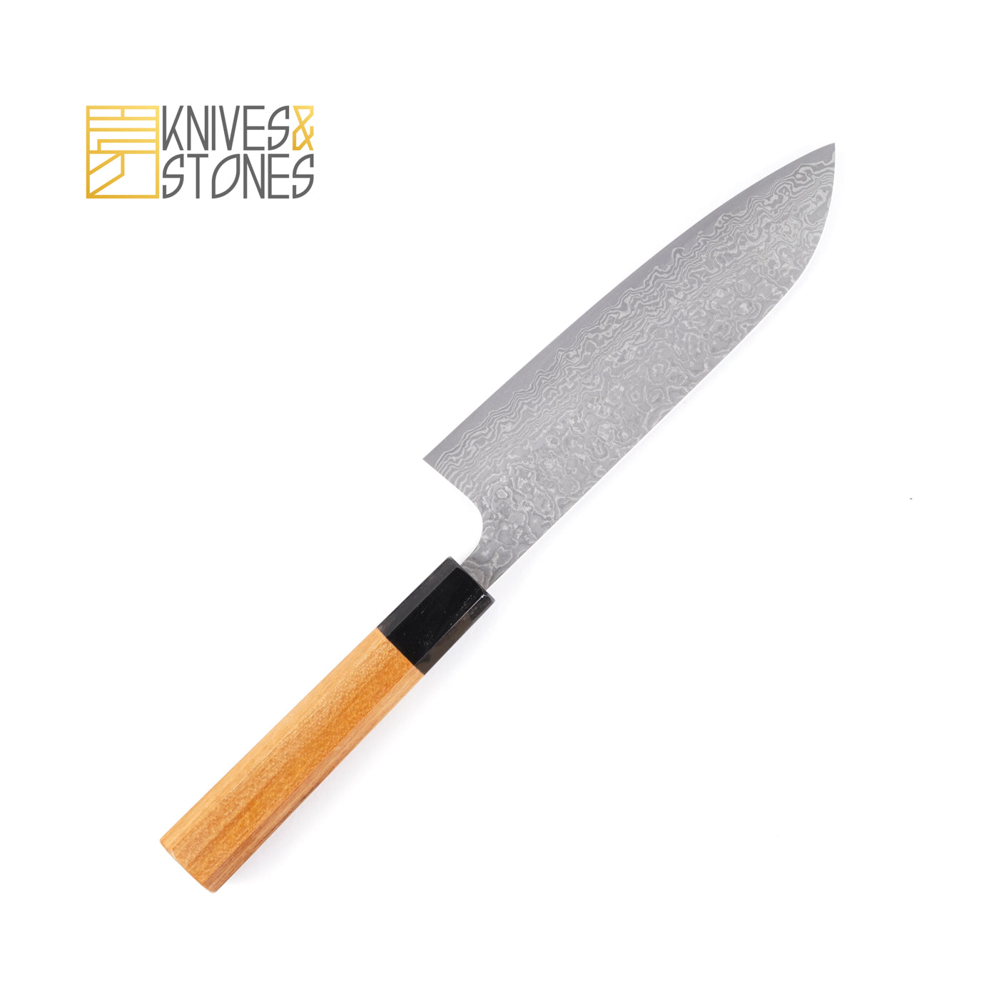 Yoshimi Kato VG10 Etched Black Damascus Santoku 175 mm with K&S Teak wood Handle is backordered and will ship as soon as it is back in stock.