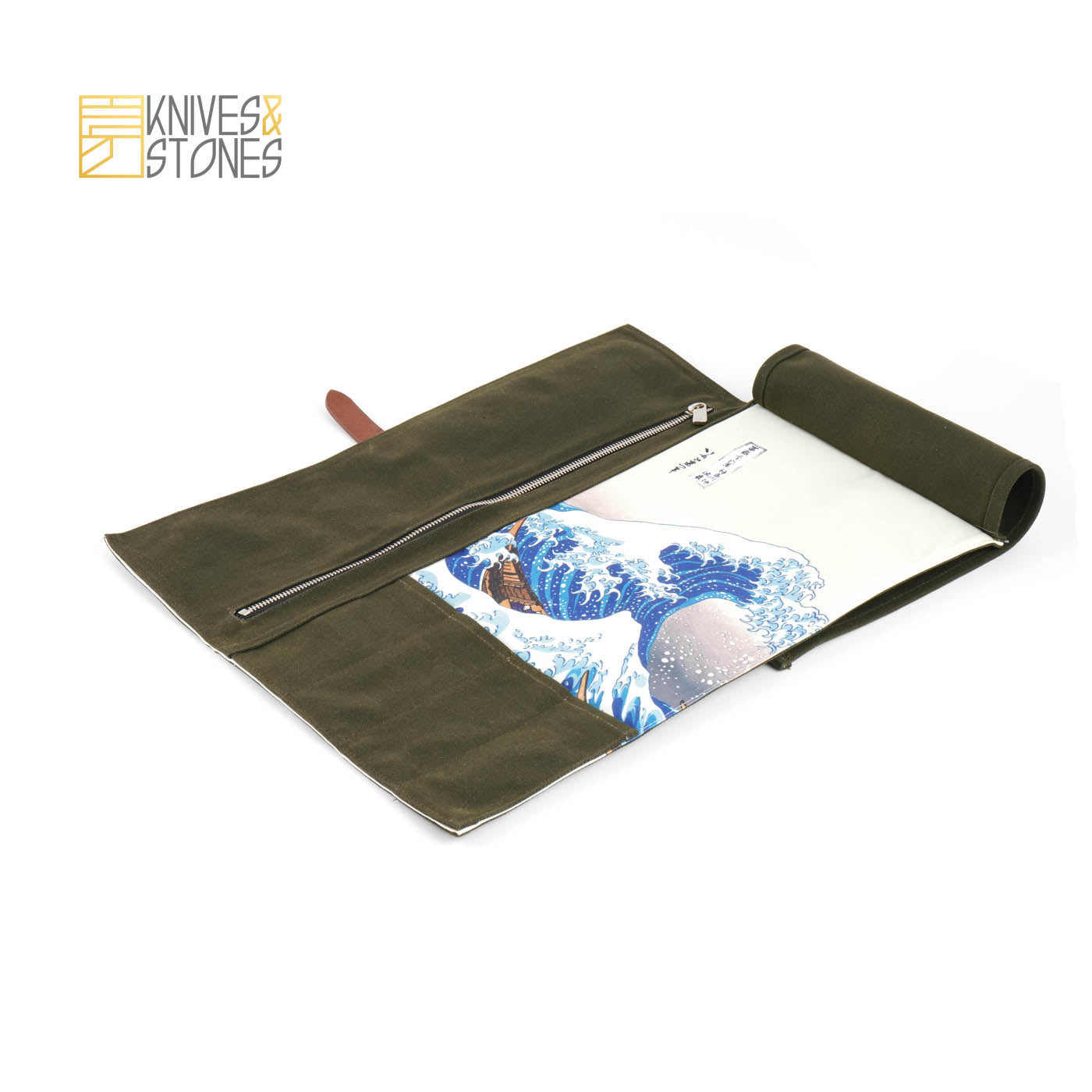 Compact Canvas Knife Roll (4 Slot) - The Great Wave