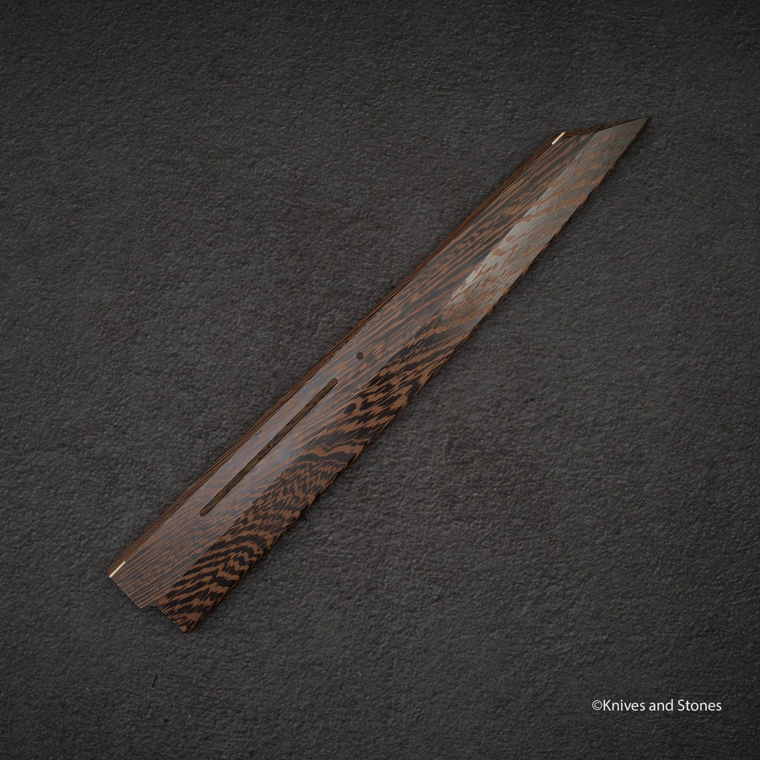 K&S Hardwood Kiritsuke Yanagiba saya that fits most traditional profile knives, such as all the Sakai brands, Masamoto and Sukenari. It may not be able to fit knives from other regions and custom brands.
