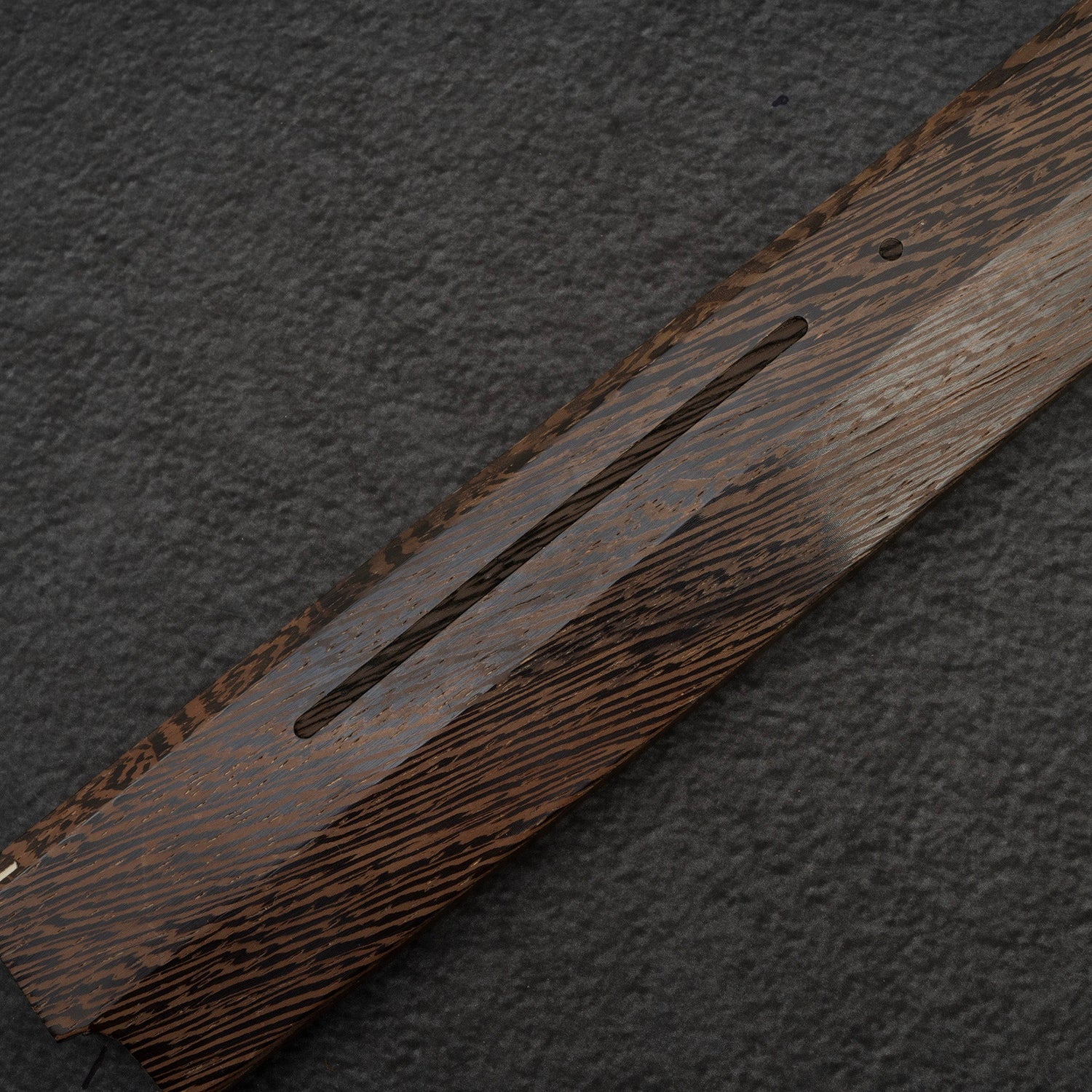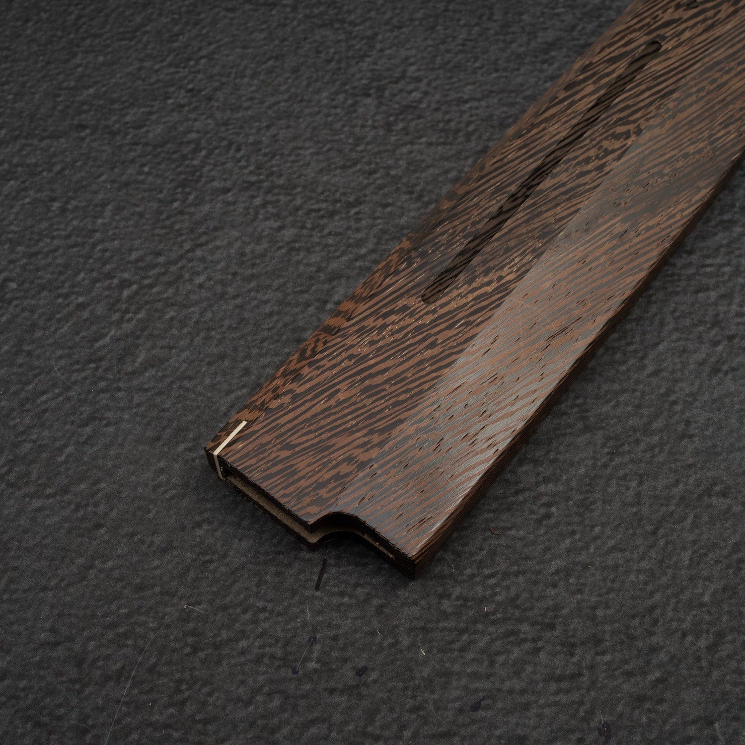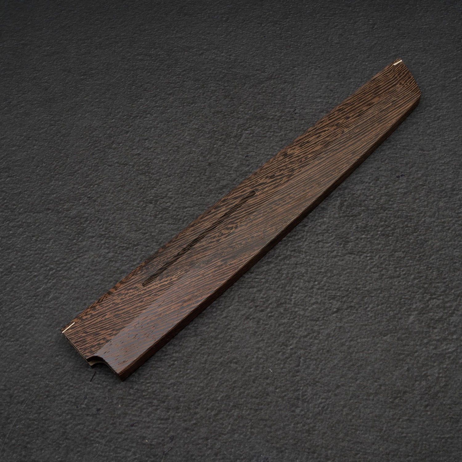 African Wenge while is less oily than Teak, is still very durable and more importantly dark. Once fully oxidated it is almost totally black and matches very well with darker handles (ebony and some dyed handles).