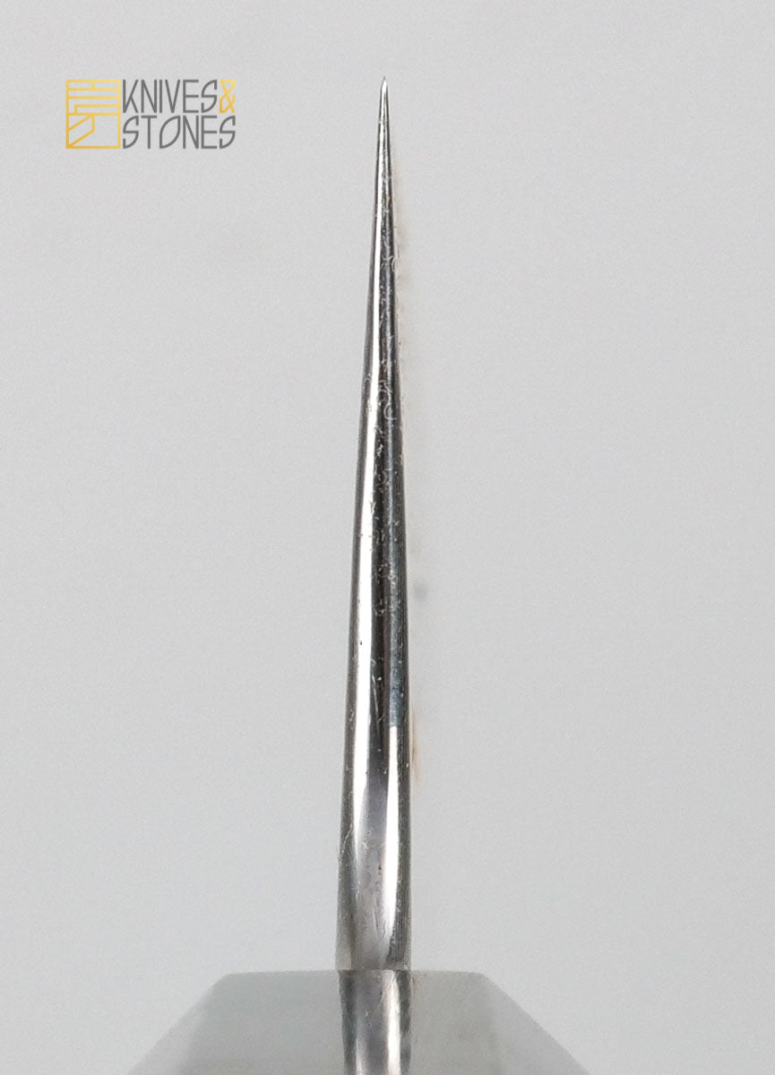The ZDP-189 blade is forged with Nickel damascus stainless steel and mirror polished, along with the rounded choil and spine, super thin behind the edge, it is truely a master-piece from Master Hanaki Nobuo.