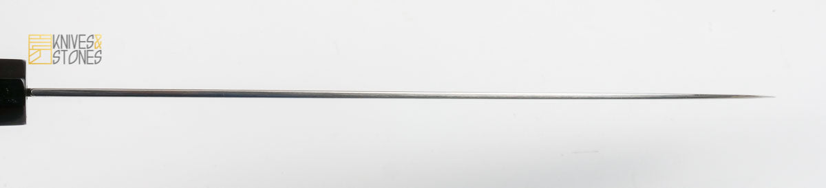 The Knives and Stones Sukenari ZDP-189 line is truely a beauty by the look, beast by the performance. The core steel is the most advanced powdered steel that Hitachi offers: the ZDP-189, reaching an unmatched hardness of HRC 65 to 67. This is acthieved by over 3% of Carbon content in the steel (White 2 has about 1%, Blue 1 has about 1.25%, that tells you something) meaning the Sukenari ZDP-189 will offer insance edge retention and sharpness. Yet it is a stainless steel becasue of the added Chromium. Overall, the ZDP-189 has very similar composition to the Cowry-X steel from Daido.