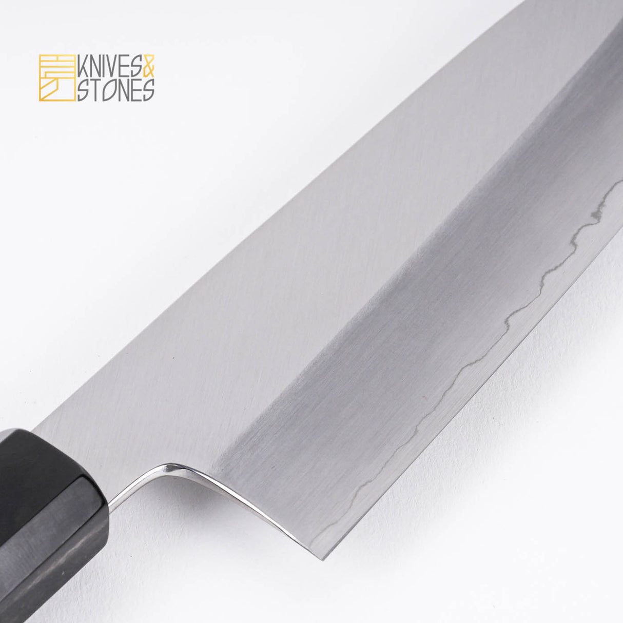 Nakagawa Ginsan Wide-bevel Santoku 170mm with K&S Ebony Handle is backordered and will ship as soon as it is back in stock.