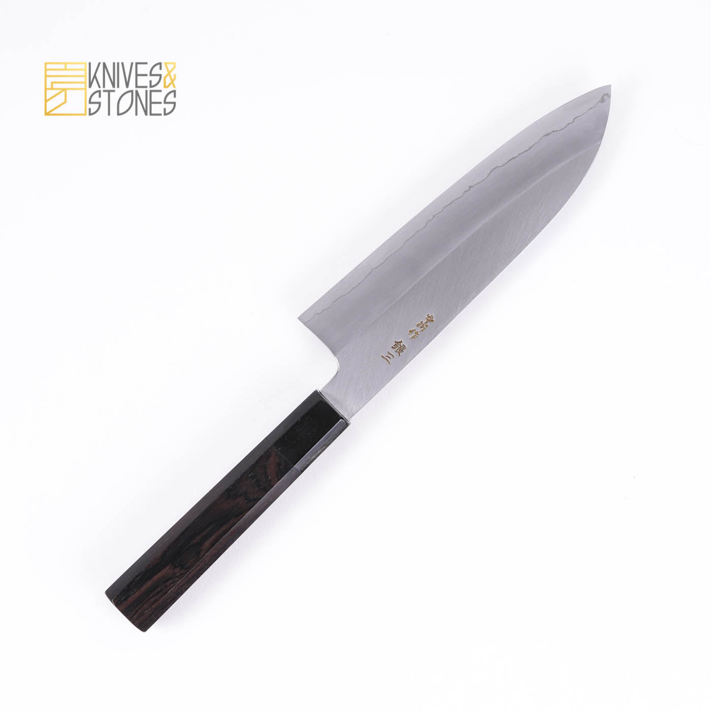 Nakagawa Ginsan Wide-bevel Santoku 170mm with K&S Ebony Handle